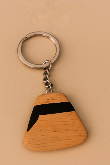 Llavero de sombrera canaria hecho de madera de pino y pintada a mano